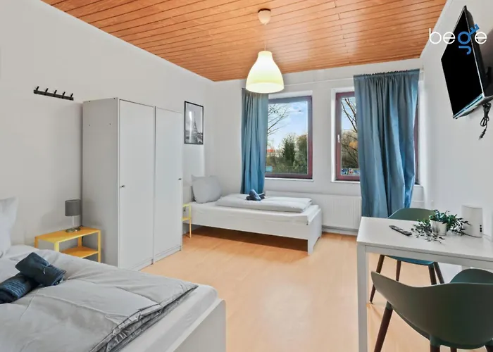 Localizado no distrito Ruhrort, o apartamento Bege Apartments Worklounge fornece acomodação com vista para o jardim. Zoológico Duisburg está a 4.9 km de distância, enquanto Igreja de São Salvador pode ser alcançado em 5 minutos de carro do apartamento.